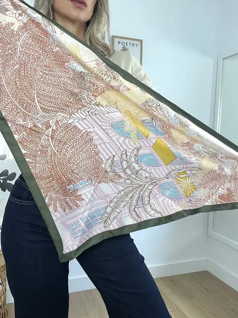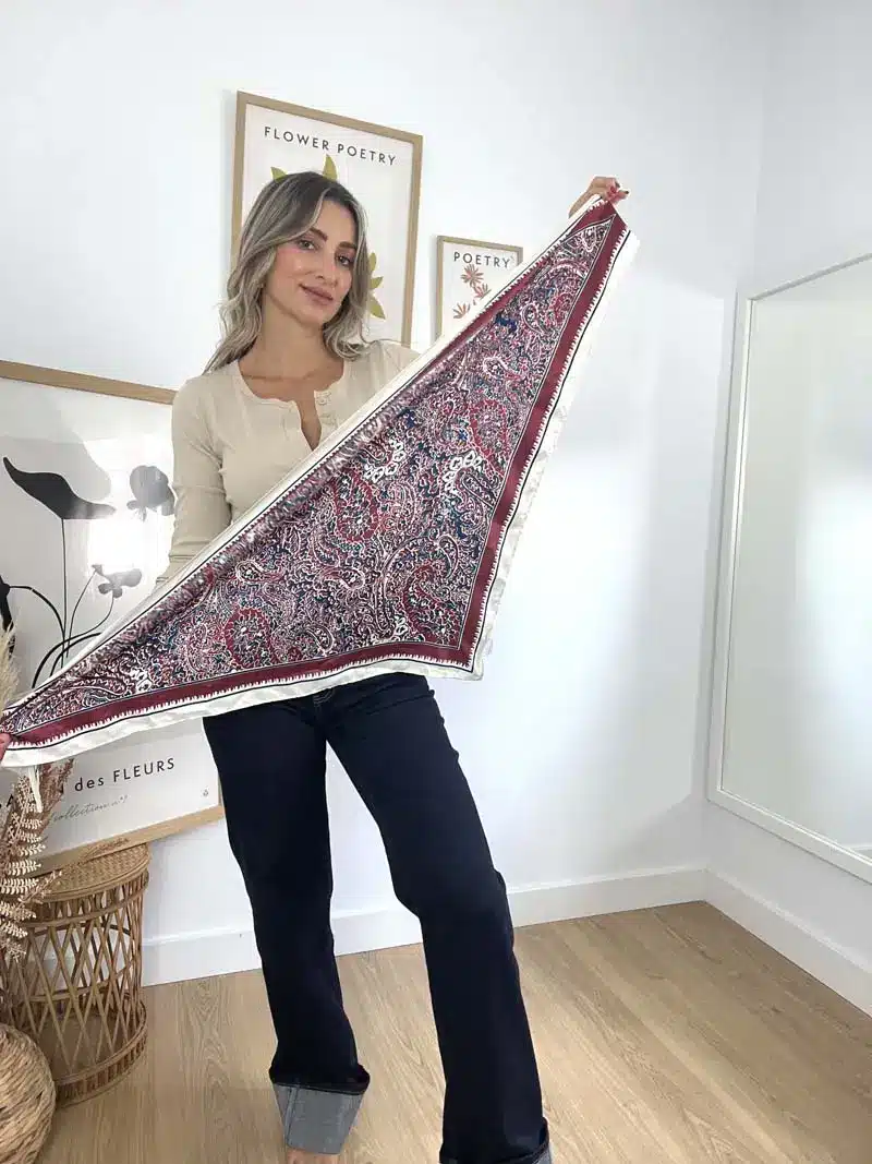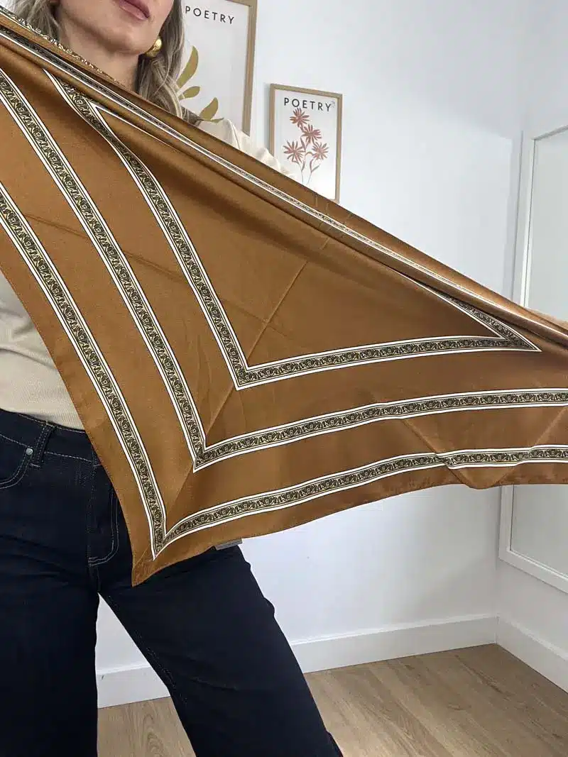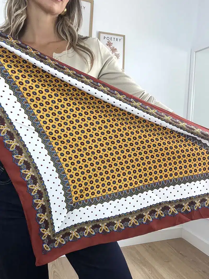 Pañuelos diferentes estampados, de tacto sedoso, forma triangular, ideales para cuello, cabello y accesorio para bolso.