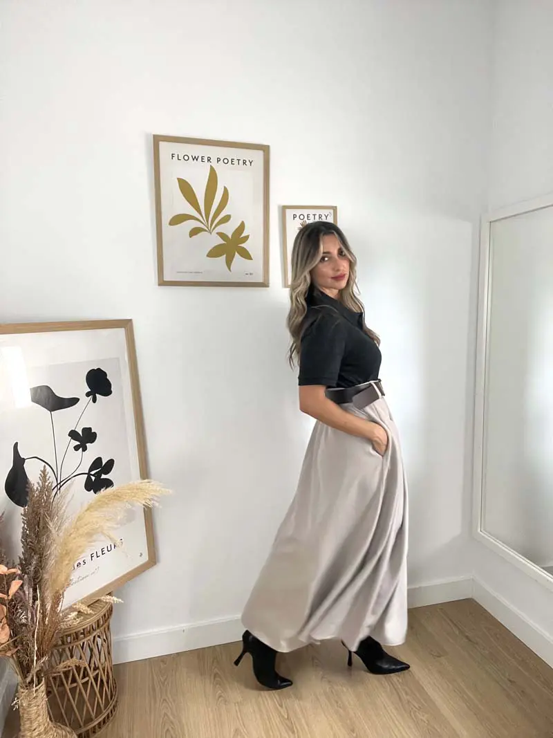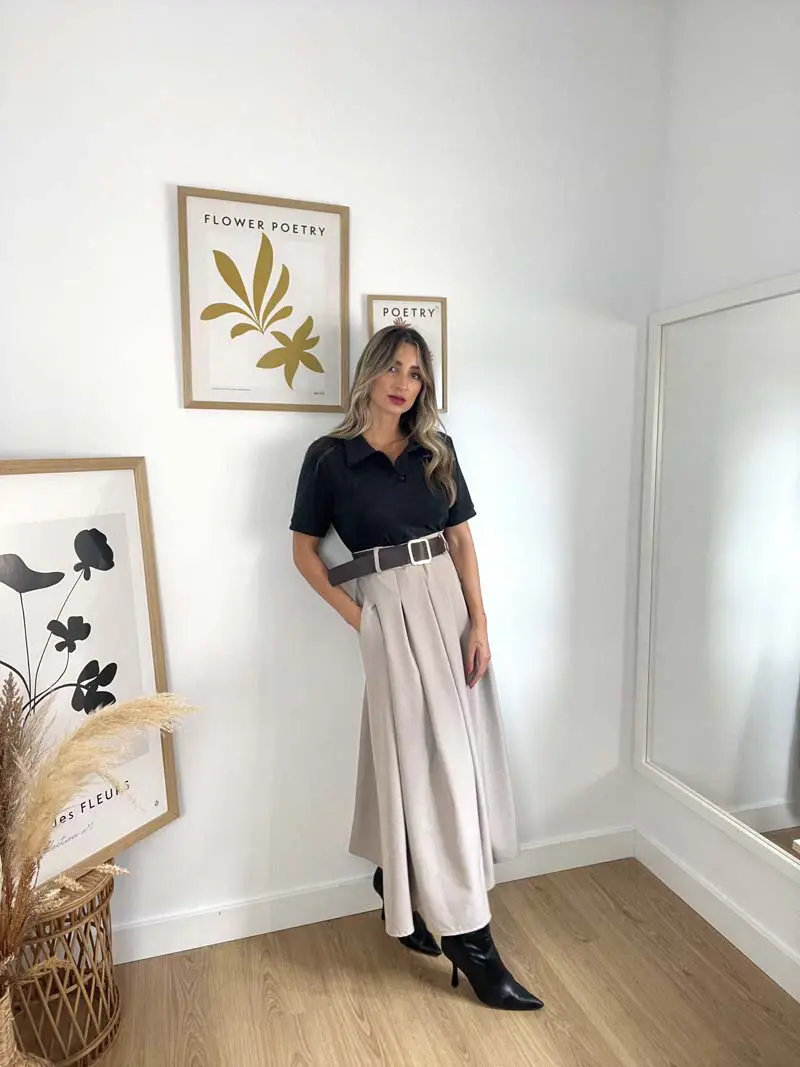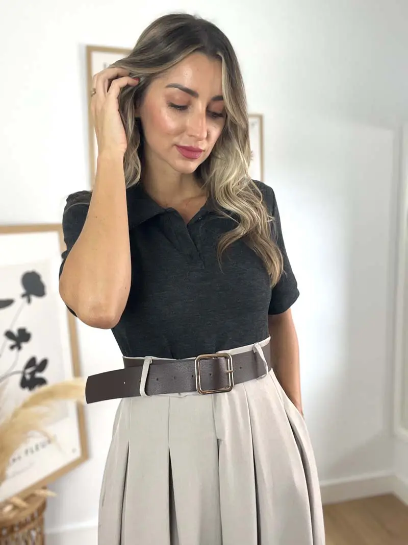 Incluye cinturón ancho con hebilla que marca la cintura y aporta un aire sofisticado.